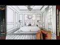 Drawing A Living Room In One Point Perspective Time-lapse - YouTube